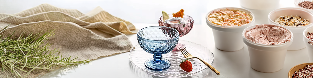 Odkryj naszą kolekcję szklanych pucharów do lodów – połączenie prostoty i klasy, które wzbogaci Twoje chwile relaksu.